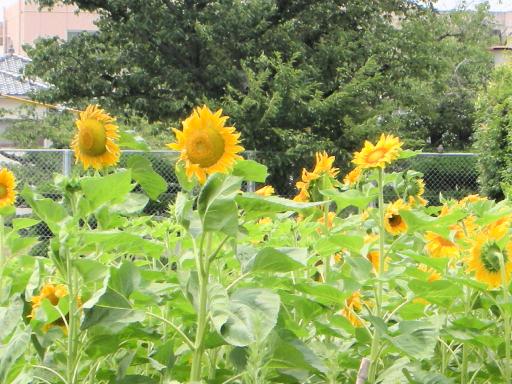 夏は やっぱり ひまわりですね。前の空地にたくさん咲いてます。